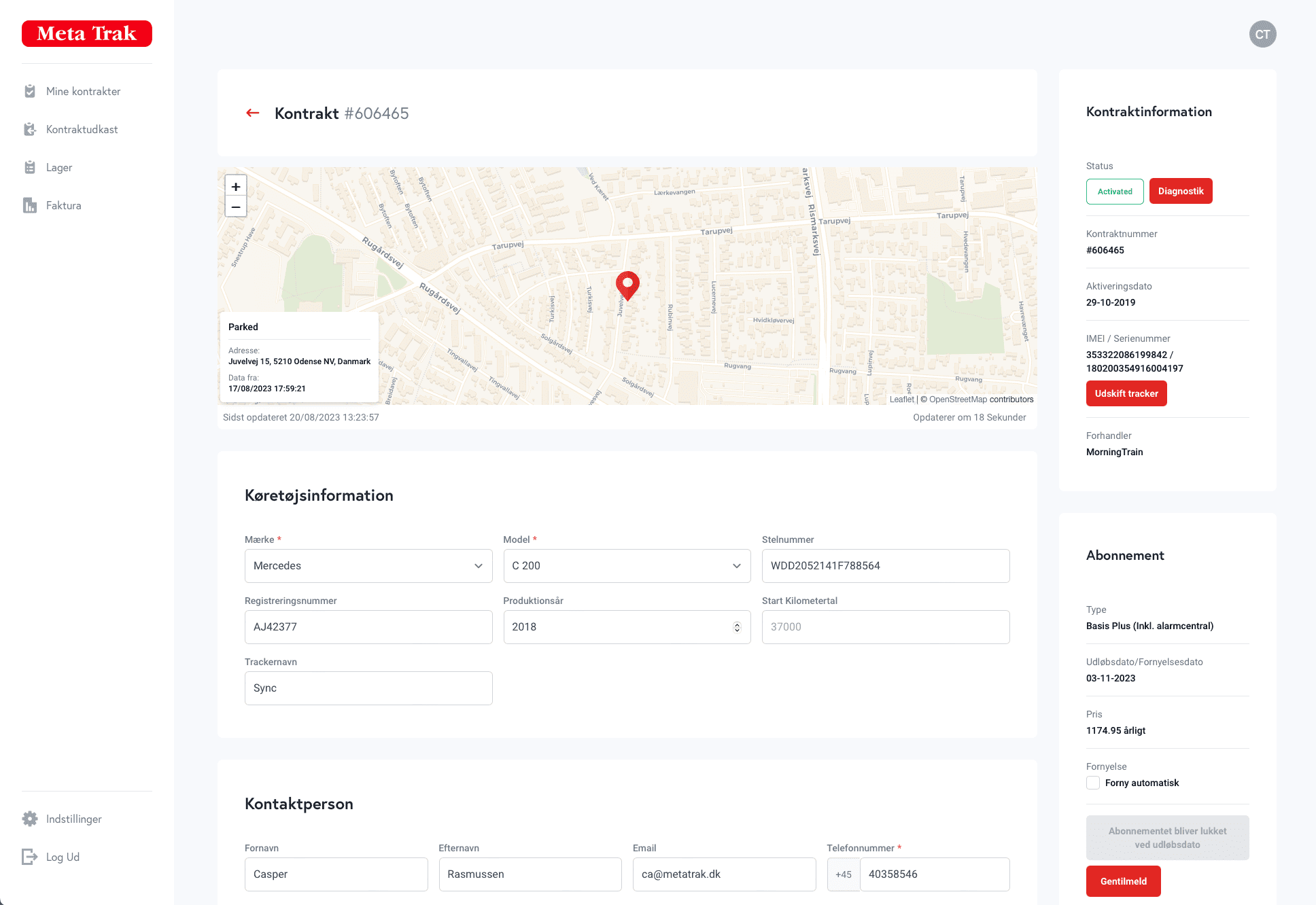 Uanset hvilket abonnement du vælger får du adgang til vores app Meta Trak Plus og webportal. Her kan du hurtigt og nemt holde styr på dit køretøj, uanset om du har én bil eller flere.